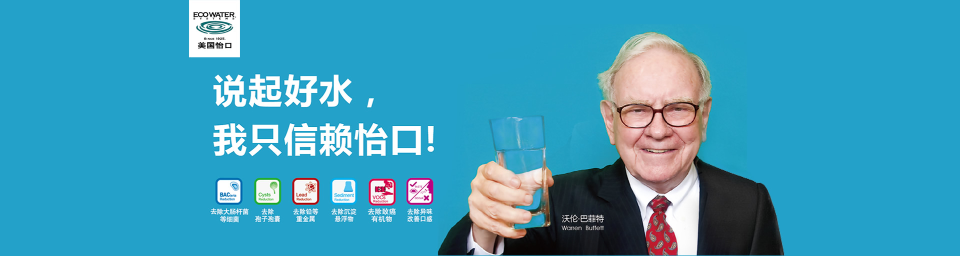 美國怡口凈水是Marmon Water/Berkshire Hathaway下屬企業, 沃倫?巴菲特(Warren Buffett)旗下的伯克希爾?哈撒韋(Berkshire Hathaway)公司2017年位居《財富》美國500強排行榜第2位及"2017年全球最受贊賞公司排行榜"第4位。
